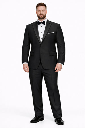 A true wardrobe essential, this black tuxedo embodies enduring style and confident refinement.