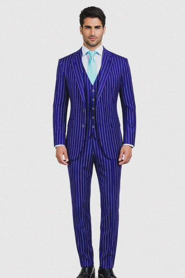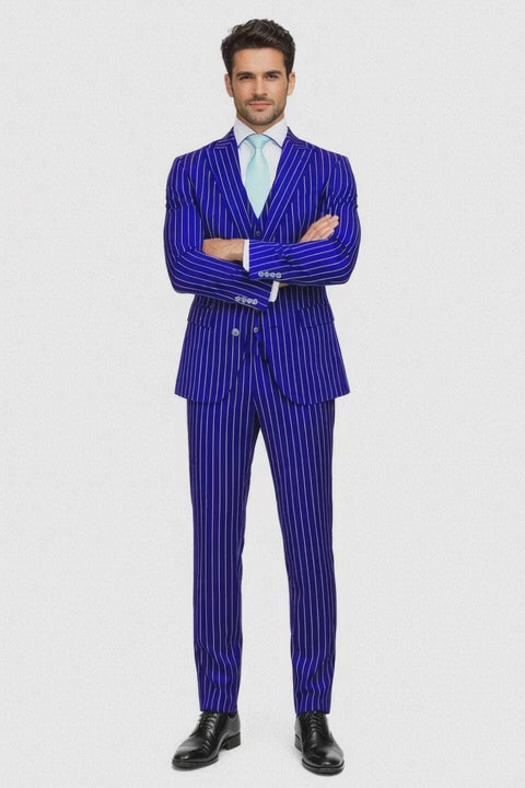 - The Vested Gangster Pinstripe 1920’s Suit in Blue is amazing. The pinstripe design feels authentic and very stylish. The vest adds a sharp and vintage touch to the look. I wore it to a themed party and received so many compliments. - Jonathan Miller