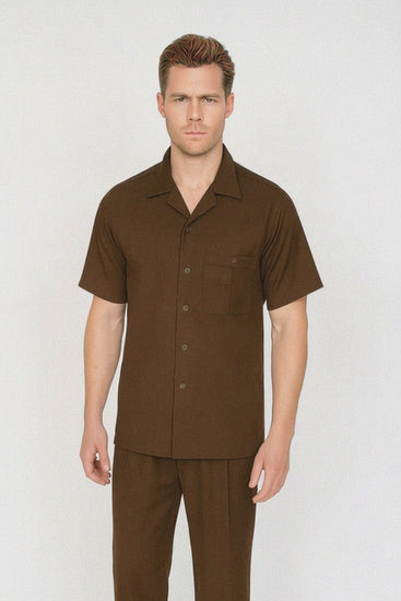 Mens Walking Suit in Color Brown leisure suit causal Matching Shirt and Pants $99