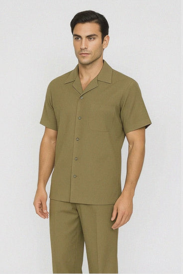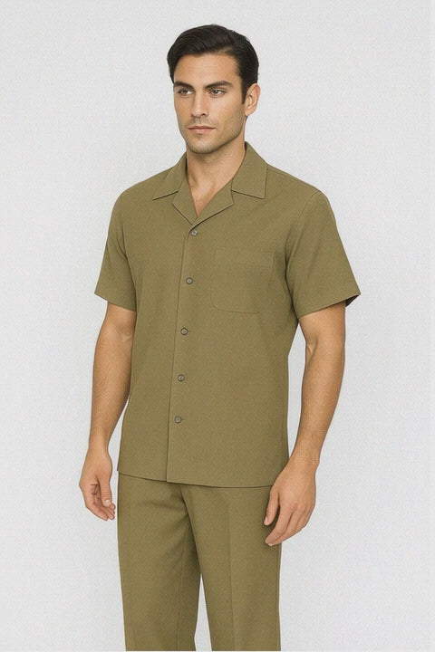 Mens Walking Suit in Color Safari Leisure Suit Casual Matching Shirt and Pants $99