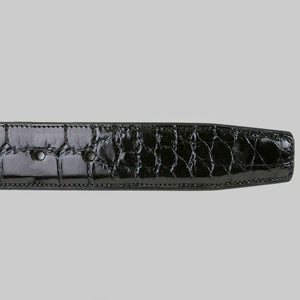 Genuine alligator belt with full grain leather backing and a beautiful semi-gloss silver buckle. A belt that is ready to put the final touch on your outfit.