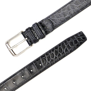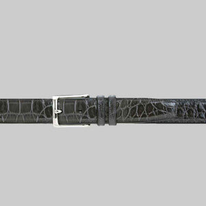 Genuine alligator belt with full grain leather backing and a beautiful semi-gloss silver buckle. A belt that is ready to put the final touch on your outfit.