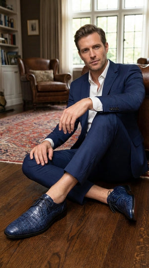 Perfect for men seeking luxury dress shoes, exotic leather shoes, blue formal shoes, designer men’s footwear, and statement dress shoes, this pair combines craftsmanship with modern fashion appeal.