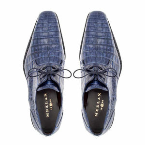 Step into refined style with these Mezlan Blue Crocodile Embossed Leather Dress Shoes, crafted for men who appreciate luxury footwear and standout design. Featuring a rich blue color with an exotic crocodile embossed pattern, these lace up Oxford shoes deliver a bold yet sophisticated look perfect for formal events, business wear, weddings, and upscale occasions.