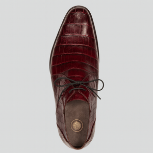 Refined and luxurious, the Mezlan Anderson Plain Toe Crocodile Shoes in rich burgundy are a timeless statement of elegance. Crafted from genuine crocodile skin and fully handmade in Spain, these lace-up dress shoes offer unmatched quality and sophistication for formal events or upscale occasions.