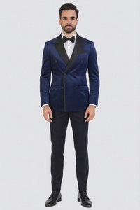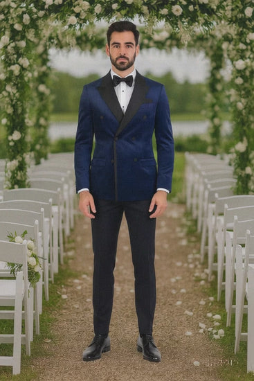 Navy Velvet Double Breasted Tuxedo Jacket – Wedding & Prom
