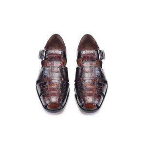 Indulge in luxury with our 8092 Close Toe Sandal in Brown. Crafted from croco print leather, these sandals elevate any outfit with their sophisticated and exclusive design. Treat your feet to comfort and style, perfect for any occasion.