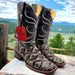 Featuring a unique African Pirarucu fish print, these wide square toe boots are sure to stand out.