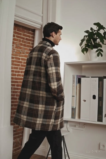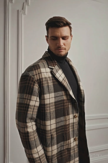 Plaid Wool Overcoat – Brown & Camel Mixed Color Topcoat
