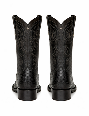 Built with precision and care, the Black Pointed Toe Ostrich Boots feature expert stitching and solid construction for enhanced durability. The sturdy outsole provides reliable traction and support, while the comfortable inner lining ensures a smooth fit for extended wear. Designed to offer both style and practicality, these boots are as functional as they are fashionable. The structured shaft and balanced heel height provide stability while maintaining the authentic Western aesthetic.