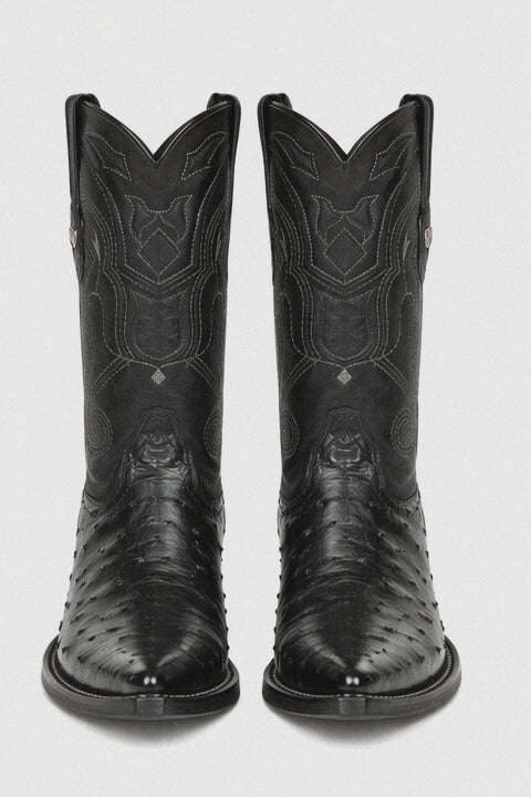 The versatility of black ostrich boots makes them an essential addition to any modern wardrobe. Pair them with a sharp black suit for a bold formal statement, or style them with dark denim and a blazer for a smart-casual look that stands out. The exotic texture adds depth and individuality, making these boots perfect for men who value distinctive design and high-quality craftsmanship.