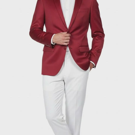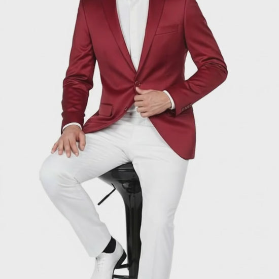 Premium Men's Burgundy Satin Slim Fit Blazer – Elegant Party & Wedding Suit Jacket in Maroon Wine Color