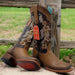 These square toe embroidered cowgirl boots by Quincy Boots feature lovely flowered stitching details along the shaft with a cognac color foot.
