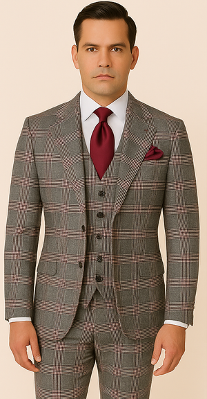 Men’s Burgundy 3-Piece Suit – Burgundy Three Buttons Vested Suit - Pleated Pants Classic Fit Athletic Cut