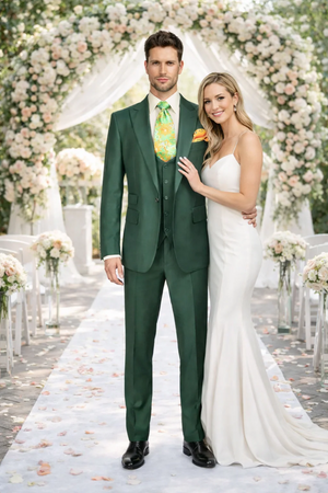 Stand out in the Rossiman Hunter Green Slim Fit Men's Suit.