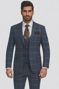 Windowpane Pattern: This distinctive pattern consists of thin, bold checks that form a window-like grid across the fabric. The navy and gray color combination offers a classic contrast, making the suit versatile yet visually striking.