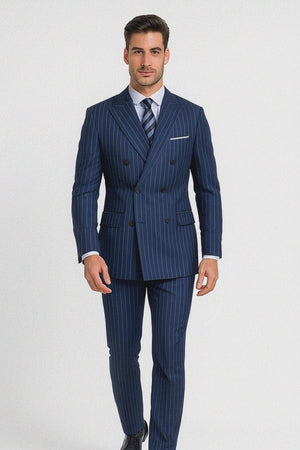 Royal Blue Pinstripe Suit - Gangster Suit - 1920's Suit - Double Breasted Suit