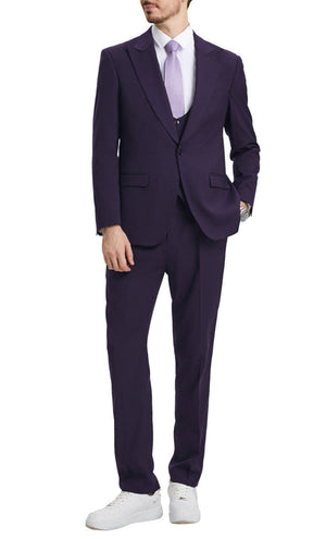 Stacy Adams - Purple 3 Piece Hybrid Fit Suit With Expandable Waist Band