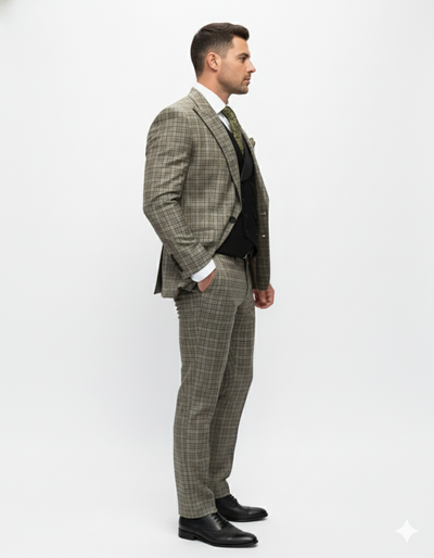 Statement Suits - Wool Suits - Peak Lapel Suits - Ticket Pocket - Modern Fit - Olive Suit