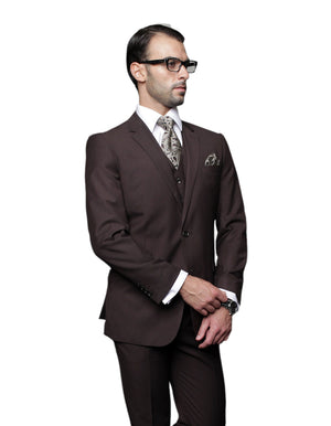 Mens 2 Button Vested Basic Wool Feel Suit in Cognac