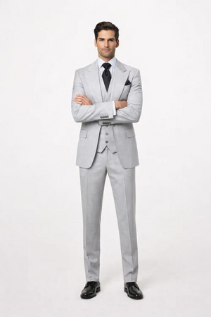 ⚪ Wool Super 150’s One Button 3-Piece Suit – Grey