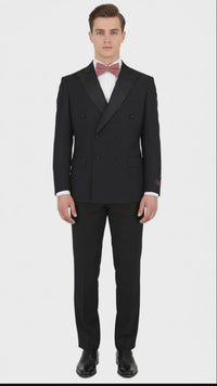 Elevate your formal wardrobe with this Men’s Classic Black Double-Breasted Tuxedo, designed for weddings, black-tie events, galas, and sophisticated evening occasions. Crafted with precision tailoring, this tuxedo features a double-breasted jacket with a luxurious satin peak lapel, adding a refined and timeless elegance to your look.