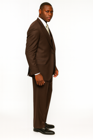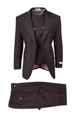Tiglio Rosso Men’s Choclate Brown 3 Piece Suit –Double Breasted Vest with Classic 100% Wool Super 150's Fabric - Pleated Pants