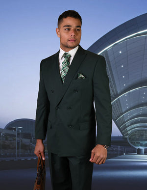 Mens Classic Wool Double Breasted Suit in Hunter Green