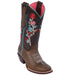 Featuring a dark chocolate hue, flowered's square toe cowgirl boots are embroidered to perfection by Quincy Boots.