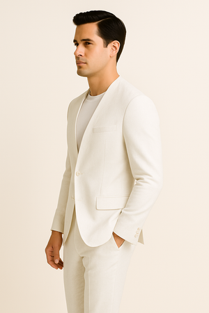White Linen Suit For Summer - Collarless Blazer and Pants Collarless Lapel - No Lapel Casual!