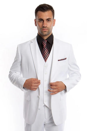 White Wedding Suit For Men - Perfect For Groom - Men's Vested Two Button Solid Color Wedding & Business Suit In White