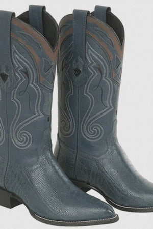 These blue ostrich boots are absolutely stunning! The color is rich and bold, and the exotic leather has that beautiful texture only genuine ostrich skin can offer. The J-toe design gives it that classic cowboy look. They’re comfortable right out of the box and get better with every wear. – Jonathan R.