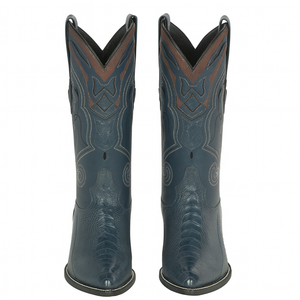 The Blue Ostrich J-Toe Cowboy Boots are a statement piece for men who want to combine rugged authenticity with modern sophistication. Pair them with denim jeans and a button-down shirt for a casual country look, or wear them with a sports coat or Western suit for weddings and special events. The brilliant blue finish adds a contemporary edge while staying true to the classic cowboy spirit.
