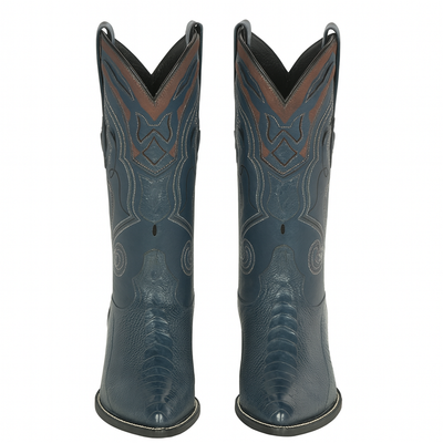 Step into bold Western luxury with the Men’s Blue Ostrich Cowboy Boots, handcrafted from genuine full-quill ostrich leather for unbeatable style, texture, and comfort. Designed with a classic J-Toe silhouette, these boots combine authentic cowboy heritage with modern craftsmanship, making them perfect for ranch wear, formal occasions, or a night out on the town.
