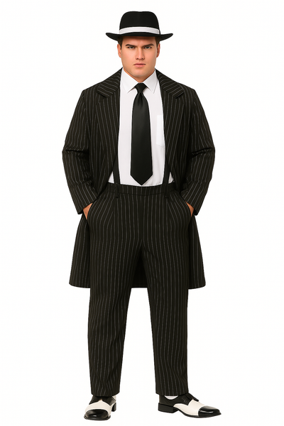 Experience the perfect blend of vintage sophistication and bold 1940s style with the Zoot Suit Costume in Black and White. Designed with attention to classic tailoring, this suit features a sharp pinstripe pattern that instantly elevates your look with a retro edge. Crafted from durable and comfortable Poly Rayon Fabric, it maintains a sleek structure while offering all-day wearability.